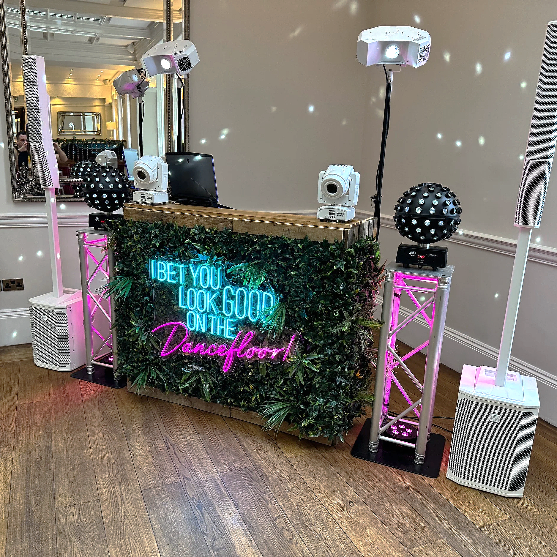 A completely customisable Ibiza Style DJ Setup complete with video DJ booth. The sky is the limit with this package where sound, lighting and visual effects are tailored to your exact requests.